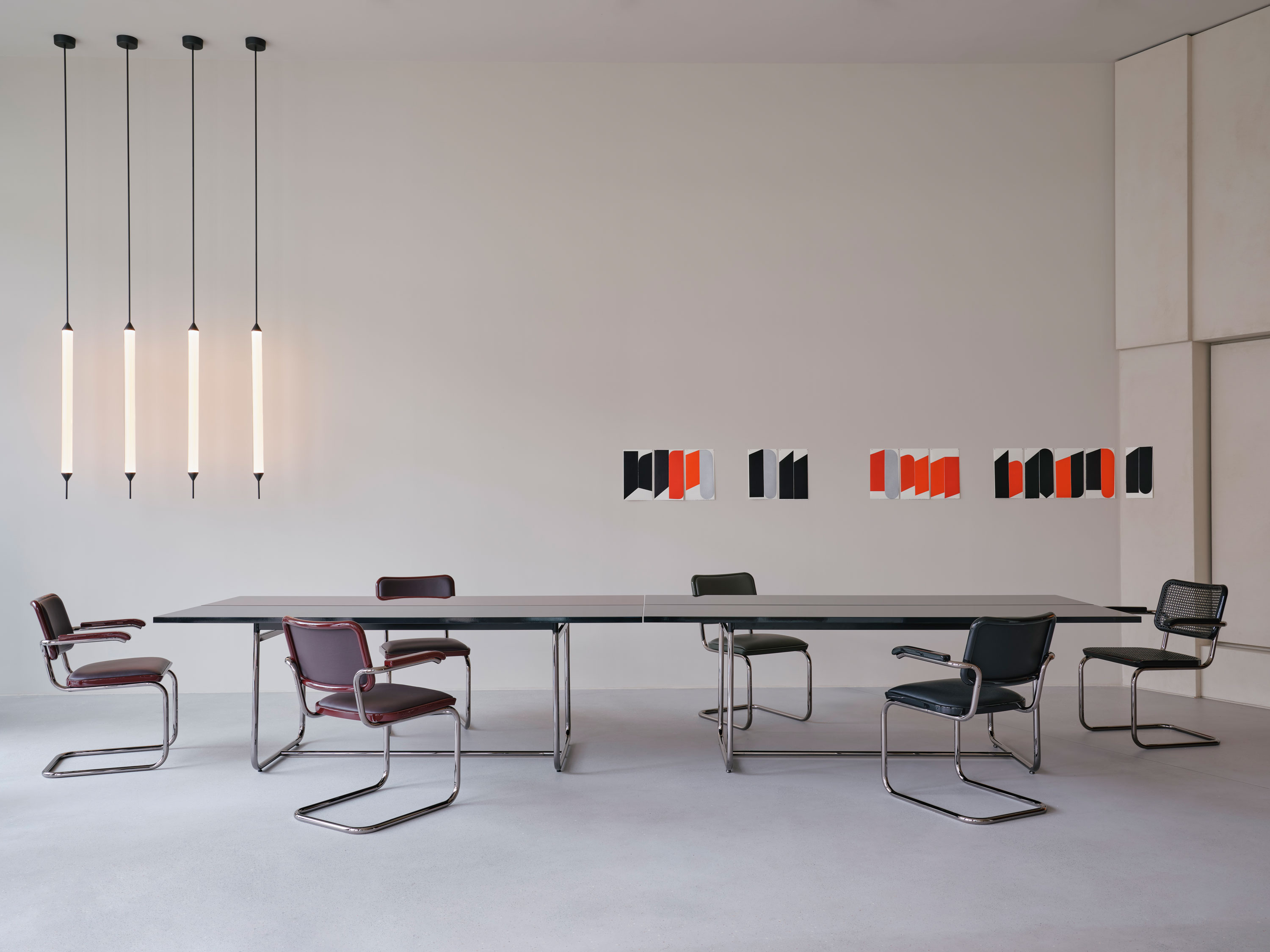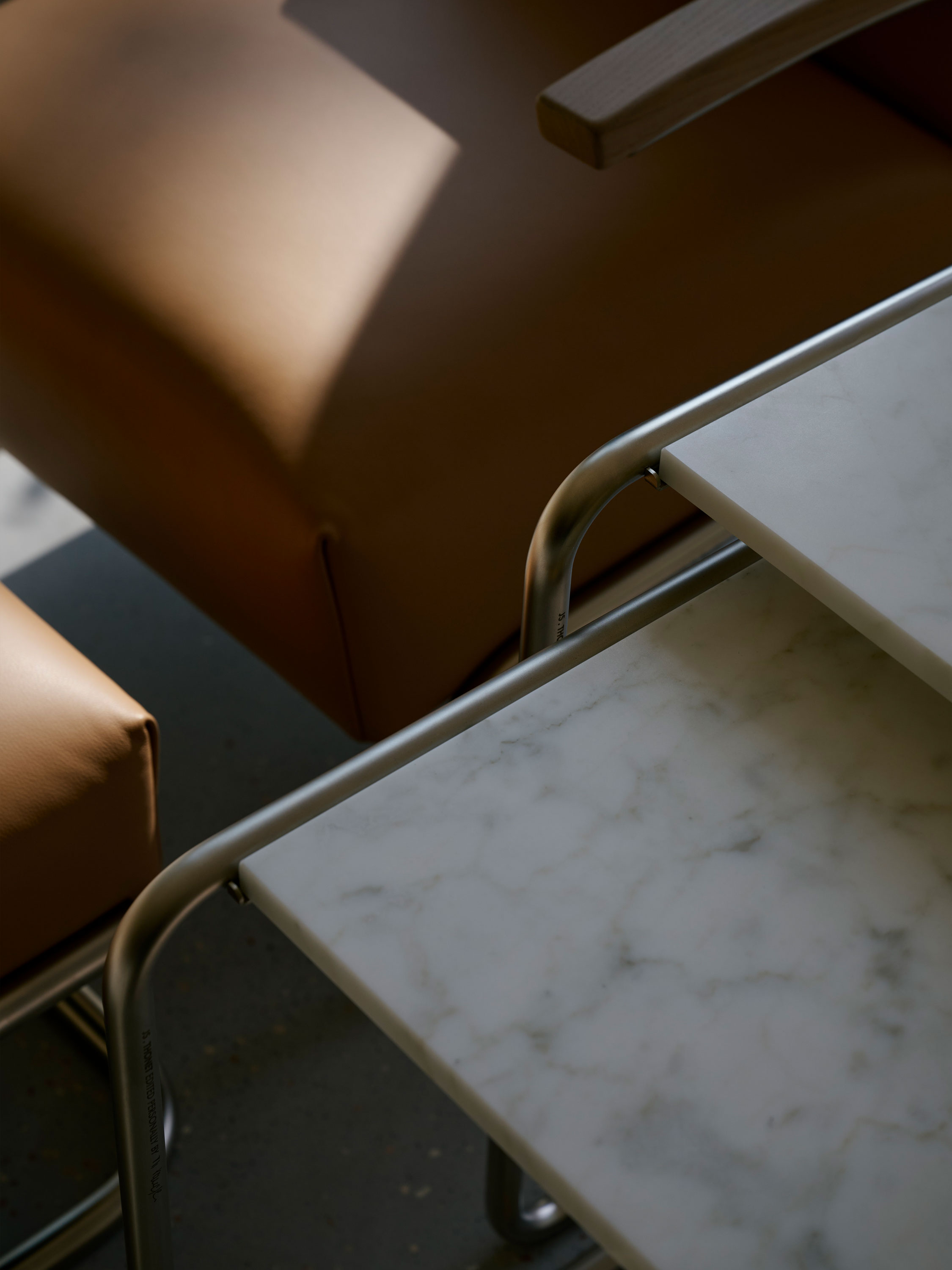 Vom ikonischen Freischwinger S 64 / 32 über den Lounge-Sessel S 411 bis zu den Tischen S 1070 und B 97 zeigt Jil Sander mit ihrer Interpretation der Thonet Stahlrohr-Klassiker eindrucksvoll, wie nuancierte Farbkonzepte und luxuriöse Materialien puristische Entwürfe weiterführen und veredeln.